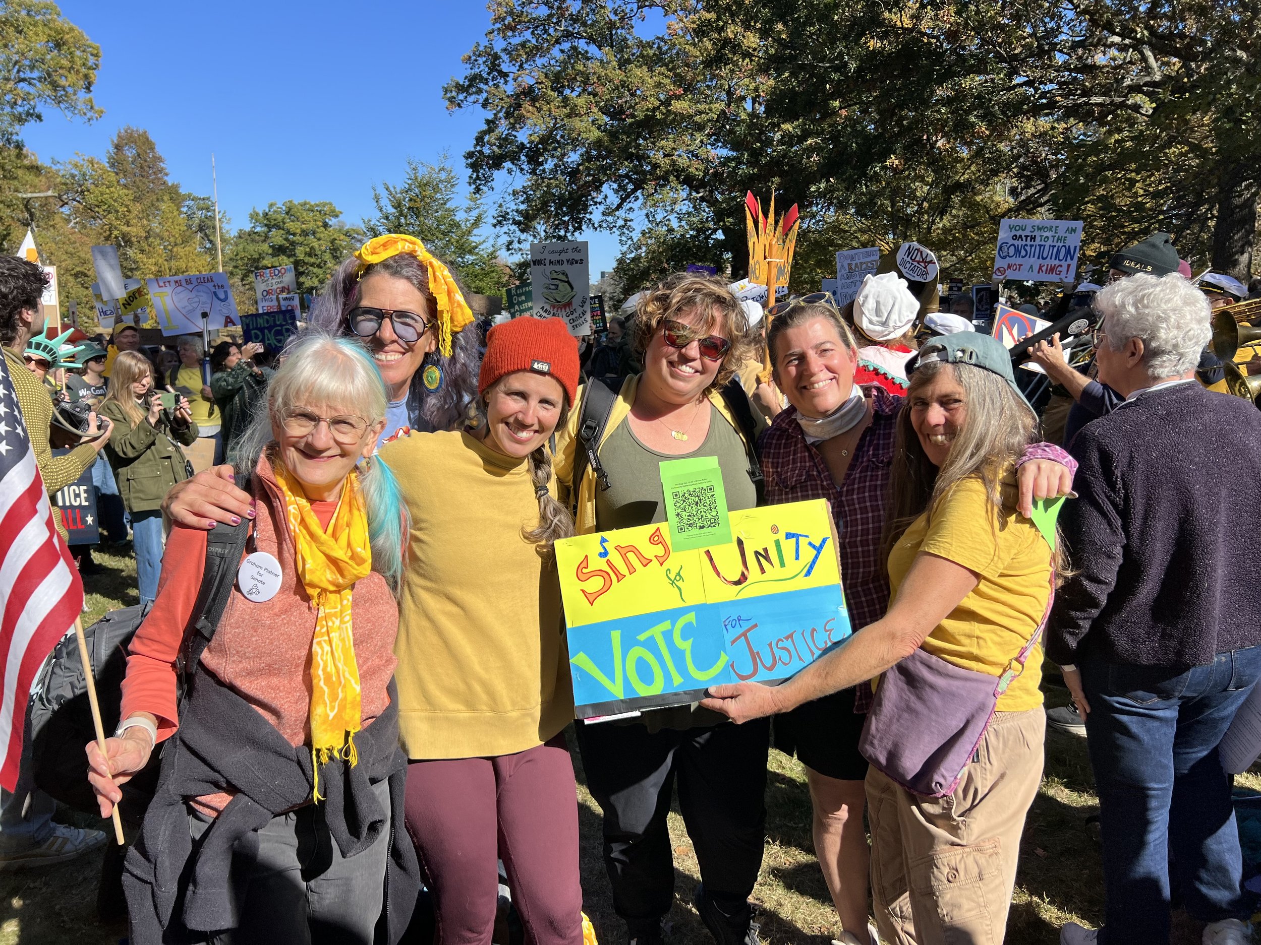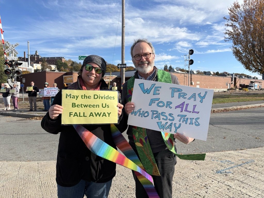 After our MultiFaith prayer service, I marched in the Pride Parade with my MultiFaith Organizing group and other affirming clergy and faith communities. I gave out a lot of free hugs wearing a shirt that says “Free Hugs” on the front and “You Are Loved.” on the back. With the Portland Community Sing, I sang/chanted at No Kings Rallies. And with the MultiFaith Organizing Community, I have protested Avelo’s contract with ICE, spoken out at both Susan Collins and Angus King’s offices and have organized/let weekly MultiFaith prayer vigils at the Cumberland County Jail - praying for all caught up in the system of injustice (including ICE detainees, all detained, guards, agents, etc.). We pray, share the stories of detainees shared with us, sing and share love with the community. You can learn more about that here if you’d like to join us - all are welcome!